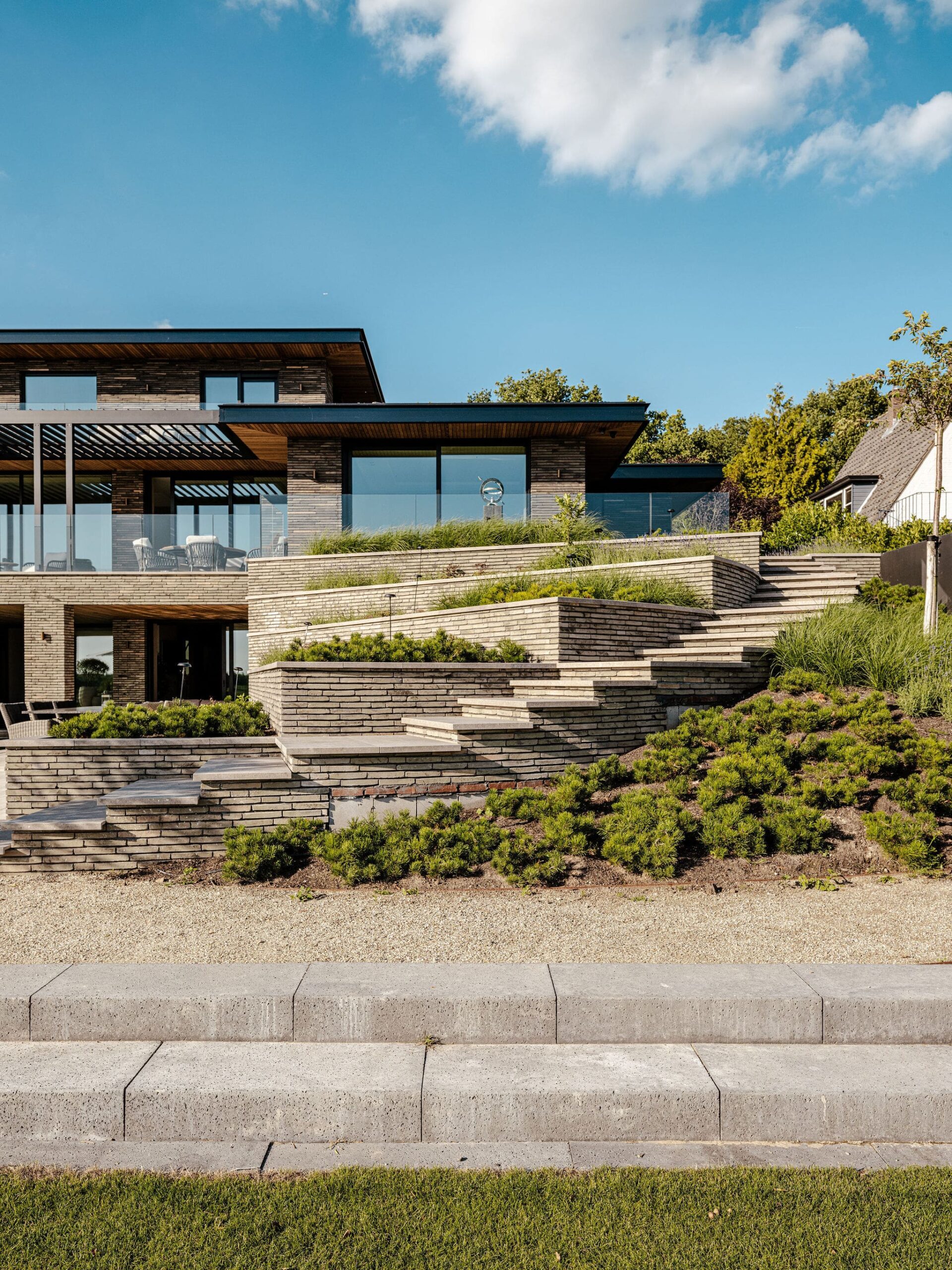 Beelden die veel zijn besproken. En veel gezien. En de reden is duidelijk. Alles is verbluffend aan deze schitterende foto’s. Deze excentrieke villa, ontworpen door HMVD architecten, ligt in het Rijngebied in Rhenen. En wij mochten bijdragen met een maatwerk overkapping: Van van Ee Vince Renson Aero Infinity. Deze terrasoverkapping bevat het wondertje van Renson: De lamellen. Deze lamellen bieden een scala aan mogelijkheden om optimaal van het buitenleven te genieten. Geopend laten de lamellen de zonnestralen vrijelijk op uw gezicht schijnen. Gesloten creëren ze een aangename schaduw tijdens warme zomerdagen.